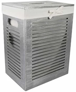 wykonany z drewna, w kolorze lodowej szarości (srebrny)Pokrowiec wykonany z bawełny w kolorze kremowej bieli, zdejmowany i nadający się do pranianadaje się do łazienki, salonu, sypialniWymiary (szer. x wys. x gł.): 35x 46x 25cmPojemność 40 litrówz pokrywąz uchwytami do przenoszenia