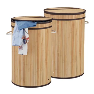 x głęb. : ok. 38 x 26,5 cm - Waga: ok. 2 kg - Materiał: bambus, poliester, MDF, bawełna - Kolor: naturalny - Zestaw 2 sztuk Składany kosz na pranie z pokrywą na zawiasach - Brudna bielizna ukryta dzięki pokrywie - Dekoracyjny design do łazienki lub sypialni - Składany w razie potrzeby i chowany, aby zaoszczędzić miejsce - Brak nieprzyjemnych zapachów dzięki otworom w podstawie - Wyjmij worek na pranie i pierz w temperaturze 30° - Łatwy w transporcie dzięki uchwytom do przenoszenia Zakres dostawy - 2x kosz na pranie z pokrywą - Elementy dekoracyjne nie wchodzą w zakres dostawy