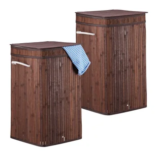 bambus, bawełna, poliester, metal - Kolor: brązowy - Zestaw 2 sztuk Składany kosz na pranie z pokrywą - Brudne pranie ukryte dzięki pokrywie - Dekoracyjny design do łazienki lub sypialni - Składany w razie potrzeby i chowany, aby zaoszczędzić miejsce - Brak nieprzyjemnych zapachów dzięki otworom w podstawie - Wyjmij worek na pranie i wypierz w temperaturze 30° - Łatwy transport dzięki uchwytom do przenoszenia Zakres dostawy - 2x bambusowy kosz na pranie w pojedynczych częściach - Elementy dekoracyjne nie wchodzą w zakres dostawy