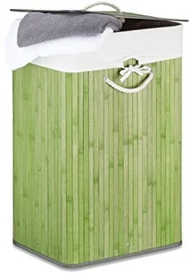 Relaxdays Kosz na pranie bambusowy, z pokrywką, prostokątny, XL, 83 l, składany kosz na pranie, wys. x gł.: 65,5 x 43,5 x 33,5 cm, zielony