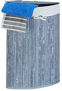 Relaxdays Bambusowy narożny kosz na pranie, 65 x 49,5 x 37 cm, 64 l, składany kosz z workiem na pranie, szary