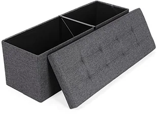 Wyściółka z pianki o grubości 2,5 cm eliminuje twardość płyt MDF, zapewniając jednocześnie wygodne i przyjemne siedzenie. Przewiewne pokrycie z imitacji lnu nadaje meblowi klasycznego charakteru. Ta pufa to także wyjątkowo pojemny schowek. Rozłóż skrzynię, wsuń przegrodę i masz aż 120 litrów miejsca do przechowywania pościeli, płyt DVD, książek lub ubrań. Składając mebel, można zaoszczędzić miejsce, gdy nie jest aktualnie potrzebny.
