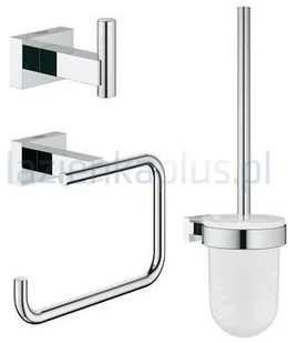 GROHE Essentials Cube to praktyczny zestaw akcesoriów, który zapewnia wygodę i eleganckie wykończenie nowoczesnej łazienki.. W jego skład wchodzą gustowny uchwyt na papier toaletowy, wieszak na ręcznik oraz szczotka toaletowa. Ich kształt, oparty na czystych, geometrycznych formach, podkreśli stylową aranżację wnętrza, zwiększając przy tym jego funkcjonalność. Powierzchnia poszczególnych elementów zestawu została poddana długotrwałemu procesowi galwanizacji chromem GROHE StarLight. Pozwoliło to uzyskać gładką i nieskazitelnie lśniąca powłokę, która dodatkowo stanowi zabezpieczenie przed odbarwieniami i jest wyjątkowo łatwa w czyszczeniu. Zadbaj o eleganckie wykończenie swojej łazienki i już dziś zamontuj w niej zestaw akcesoriów GROHE Essentials Cube!