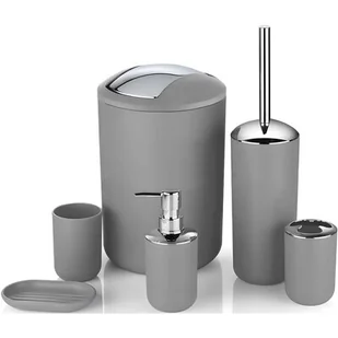 Zestaw łazienkowy Flores to elegancki i nowoczesny zestaw łazienkowy składający się z 6 elementów: pojemnika ze szczotką do WC, kosza, mydelniczki, kubka, dystrybutora mydła w płynie oraz kubka na szczoteczki. Wszystkie elementy wykonane są z trwałego, lekkiego i łatwego do utrzymania czystości tworzywa sztucznego, z zachowaniem dbałości o najdrobniejsze szczegóły. Połączenie kolorów czarnego matu i chromu sprawia, że komplet doskonale pasuje do nowocześnie zaaranżowanych pomieszczeń w stylu loftowym, industrialnym i klasycznym. Idealnie spełni oczekiwania osób, które chcą mieć estetyczną, praktyczną i porządnie wyposażoną łazienkę.