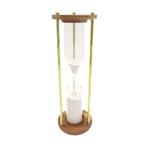Klepsydra mosiężno drewniana XXL Piękna klepsydra dekoracyjna doskonale wykonana z wysokiej jakości materiałów w postaci mosiądzu oraz drewna nadających efektu połączenia stylu retro z glamour. Ekskluzywny pomysł na prezent, zwłaszcza dla osób dojrzałych, który spotka się z wielkim uznaniem. Rozmiar XXL o wysokości przekraczającej 30 cm i czasie przesypywania około 30 minut. rozmiar XXL czas przesypywania około 30 minut wykonana z mosiądzu, szkła oraz drewna bardzo wysokiej jakości wymiary 9,5 x 9,5 x 30 cm piękny pomysł na ekskluzywny prezent