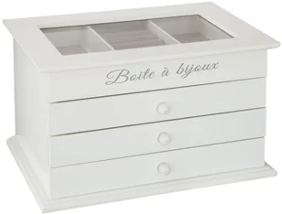 - Pojemna kasetka na biżuterię w kolorze białym.