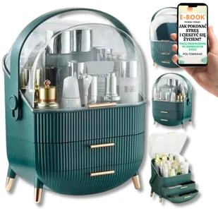 DUŻA KOSMETYCZKA KUFEREK NA KOSMETYKI BIŻUTERIĘ ORGANIZER NA KOSMETYKI SZKATUŁKA PUDEŁKO WIELOPOZIOMOWE ZIELONY PREZENT DLA NIEJ + EBOOK-1