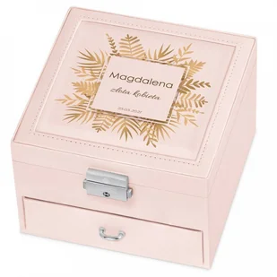 Murrano Szkatułka na Biżuterię Różowa z Nadrukiem Złote Liście SZKT-BR-037