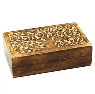 Ta urocza szkatułka została wykonana w Indiach z egzotycznego drewna mango, tworząc harmonijną kombinację naturalnego piękna i orientalnego wzornictwa. Te szkatułki doskonale nadają się jako ozdoba wnętrza, a także jako praktyczne miejsce do przechowywania cennych przedmiotów. Możesz w nich przechowywać biżuterię, drobne skarby, pamiątki czy nawet ukryć w nich małe prezenty. To również doskonały pomysł na prezent dla bliskich osób, które docenią indyjski urok i oryginalność. Wymiary: 20,5cm/12,5cm ,wysokość 6cm