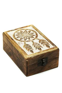 Ta urocza szkatułka została wykonana w Indiach z egzotycznego drewna mango, tworząc harmonijną kombinację naturalnego piękna i orientalnego wzornictwa.Te szk...