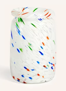 Wazon Splash Roll Neck Medium White Dot to prawdziwa uczta dla oczu z plamą pięknych kolorów, które doskonale ze sobą współgrają. Ta piękna kolekcja artykułów gospodarstwa domowego składa się z wazonów i talerzy, które zostały stworzone przy użyciu specjalnej techniki dmuchania szkła obejmującej wiele warstw szkła, co nadaje każdemu elementowi z serii Splash charakterystyczną grę kolorów na powierzchni. Charakterystyczny wzór jest szczególnie widoczny w świetle słonecznym, gdzie piękny design jest podkreślony, a gra kolorów błyszczy. Ręcznie wykonana technika zapewnia unikalny produkt o szczególnie wysokiej wartości estetycznej. Wszystkie przedmioty z serii Splash mogą być używane do celów praktycznych, takich jak przechowywanie, lub jako piękne przedmioty dekoracyjne upiększające dom.