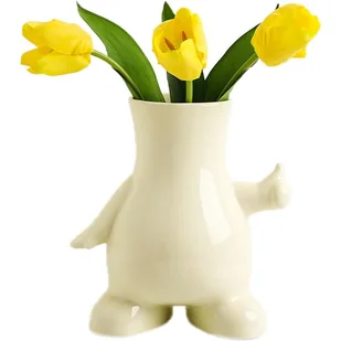 CECHY PROJEKTOWE - Kremowa doniczka doniczkowa charakteryzuje się uroczym i artystycznym wzorem kształtu ludzkiego ciała, który nadaje gestowi Twojej wyjątkowej osobowości wystrojowi domu. Nowoczesny ceramiczny wazon artystyczny z wyrazistą pozą imitującą człowieka to zarówno wizualnie interesujący, samodzielny element dekoracyjny, który pozwoli Ci wyeksponować kwiaty, jak i centralny element, który będzie stanowił temat do rozmowy.