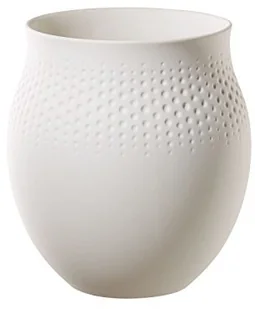 Wazon Perle duży Manufacture Collier blanc Matowa powierzchnia wazonu Perle z kolekcji Manufacture Collier blanc o uderzającej strukturze i nowoczesnym kolorze idealnie pasuje do kompozycji wiosennych czy letnich kwiatów. Wazon z wysokiej jakości porcelany doskonale nadaje się zarówno do wyeksponowania pojedynczych kwiatów, jak i bukietów. Elegancki wazon będzie przyciągającym oko dodatkiem tak w nowoczesnym, jak i tradycyjnym domu. Producent zaleca ręczne mycie produktu oraz używanie tylko do celów dekoracyjnych.