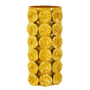 Dekoracyjna waza o żywym i nowoczesnym designie, z reliefową powierzchnią i błyszczącym żółtym wykończeniem. Idealna, aby nadać pomieszczeniu energii i koloru. . Ten dekoracyjny wazon jest idealnym rozwiązaniem do eleganckiego przechowywania kwiatów, ale także jako prosty mebel. Jest wszechstronny i pasuje do każdego pomieszczenia w domu, a także do barów, restauracji, sklepów i biur. Jest to idealny dodatek dekoracyjny, który doda osobistego charakteru, którego szukasz.