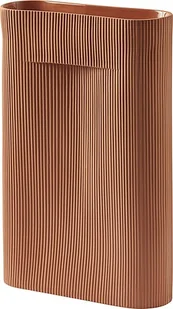 Wazon Ridge H48,5 Terracotta to nowy sposób na wyeksponowanie kwiatów. Jego rzeźbiarski wyraz ma artystyczny charakter - nawet gdy nie jest używany. Wyrafinowane wgłębienie w środku wazonu pozwala kwiatom stać pionowo i przydaje się, gdy chcesz przenieść wazon. Wazon jest dostępny w dwóch rozmiarach o wysokości 35 lub 48,5 cm. Do wyboru jest model w kolorze złamanej bieli wykonany z fajansu i model w kolorze terakoty wykonany z terakoty.