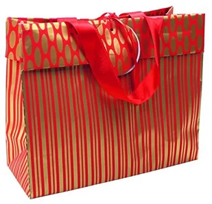 Clairefontaine 201848C średnia torba prezentowa z nadrukiem po obu stronach - wymiary 33x11x25 cm wzór Recto-Verso, Dots and Gold and Red Stripes