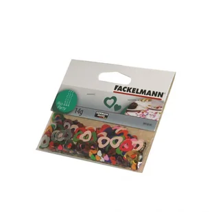 Konfetti to obowiązkowy gadżet każdej imprezy - od niewielkiego przyjęcia w gronie rodzinnych, na wielkich balach kończąc. Doskonale sprawdzi się w roli dekoracji na przyjęciach dziecięcych lub karnawałowych. W zestawie znajdują się dwa rodzaje serduszek w wielu żywych, połyskliwych kolorach: małe i większe ażurowe. W opakowaniu mieści się 14 g konfetti.