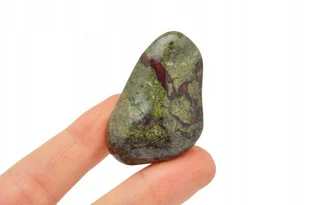 NATURALNY JASPIS EPIDOT. SZLIFOWANY I POLEROWANY OKAZ. POSIADA ZIELONĄ BARWĘ Z CZERWONYMI, NIEREGULARNYMI PLAMAMI. DOSKONAŁY DO KOLEKCJI, DO RĘKI. LOK. AFRYK...