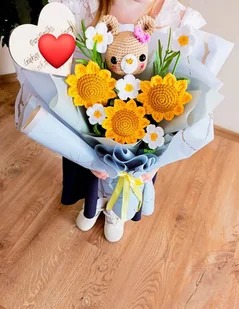 Kwiaty szydełkowe Bukiet Możliwość wykonania w dowolnym kolorze Możliwość person ...