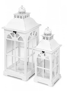 LATARNIA LAMPION DREWNIANY ŚWIECZNIK LATARENKA BIEL ZESTAW 2 SZTUK Candela - Kolekcja lampionów, które swoją formą podkreślają charakter stylowego wnętrza. A także dodadzą uroku chwilom spędzonym w ogrodzie. RETRO MODEL: MSL2520 WYMIARY DUŻEJ LATARNI: (wysokość x szerokość x głębokość) 71 x 24 x 24 cm WYMIARY MAŁEJ LATARNI: