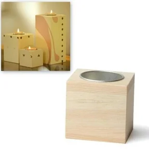 Artemio 6 x 6 cm kwadratowy mały drewniany świecznik, beżowy [używany z świecznikami]
