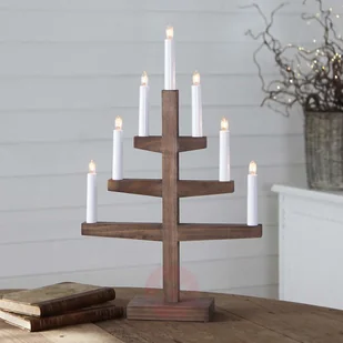 Siedmiopunktowy świecznik Trapp z drewna dębowego Siedmiopunktowy świecznik Trapp, który sprawdzi się jako bożonarodzeniowa dekoracja, przypadnie do gustu miłośnikom wystroju inspirowanego naturą. Jest wykonany z drewna dębowego i zachwyca ponadczasową, prostą formą i mgnieniu oka zapewni uroczyste akcenty świetlne na stole. Sprawdzi się przede wszystkim jako dekoracja okna podczas Świąt Bożego Narodzenia. Lampki w kształcie świeczek są wyposażone w żarówki E10 o mocy 3 waty każda, które swym nastrojowym światłem tworzą we wnętrzu przytulną atmosferę.