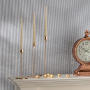 zestaw trzech metalowych świeczników w kolorze złotym proste i niezwykle eleganckie w formie będą idealnym uzupełnieniem dekoracji każdego wnętrza do zestawu pasują świeczki o średnicy 2cm materiał: metal długość podstawy: 10 cm,