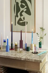 Piękny i bardzo oryginalny świecznik wykonany ze szkła kolorowego. Wielobarwny i ciekawy, będzie piękną ozdobą na Twojej komodzie, stole czy parapecie. Dodaj koloru do wnętrza wybierając ten kolorowy świecznik na świecę stołową.