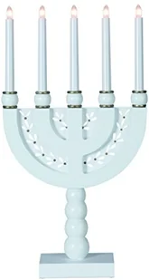Star-M-00003 Świecznik 'Norberg' - 5 ramion - ciepłe białe żarówki - wys: 57cm, dł: 32cm - włącznik - biały/złoty