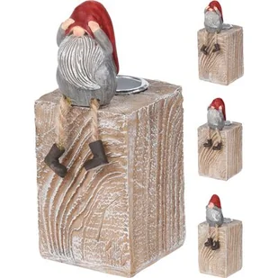 Świecznik drewniany ze skrzatami 14,5 x 5,4 cm