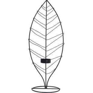 Świecznik metalowy liść czarny 38 cm