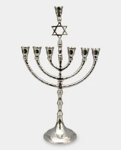 Świecznik Siedmioramienny Menora Judaistyczna z Gwiazdą Dawida Srebrna