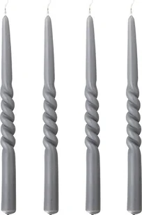 parafinaWymiary produktu: D2. 2xH30 cmZawartość: 4 sztuki Zestaw stylowych świec stworzy przyjemną atmosferę w domu. Długie świece zachwycają swoim skręceniem, które jest wykonywane ręcznie przy produkcji każdej świecy. Świece palą się do 7 godzin i same gasną, gdy się wypalą.