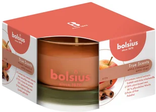 Świeca zapachowa w szkle 50/80 True Scents Jabłko z cynamonem marki BOLSIUS. Zawiera naturalne olejki Subtelny, przyjemny aromat jabłka z cynamonem. Zachwyca owocowymi nutami, słodyczą szarlotki z cynamonem Kompozycję idealnie dopełniają orzeźwiające cynamonowe akordy. Wspaniała ozdoba i piękny zapach Ciemnopomarańczowa świeca w bezbarwnym, grubym szkle. Kompozycja naturalnych olejków eterycznych.