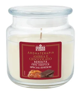 Cereria Di Giorgio Świeca zapachowa w średnim słoiku z wosku roślinnego, 100% trwałości do 80 godzin, zapachowa, Boże Narodzenie, bursztyn i czekolada - spokój, wyprodukowano we Włoszech
