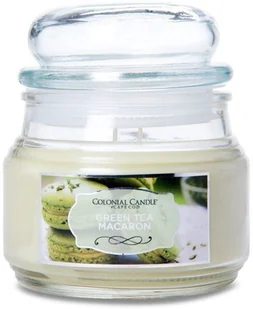 Świeca w szkle Green Tea Macaron od marki Colonial Candle rozświetli Twój dom. Będzie wspaniałym dodatkiem do każdego pomieszczenia, a piękny zapach makaronika o smaku zielonej herbaty stworzy odpowiednią atmosferę. Pali się równomiernie dzięki dwóm bawełnianym knotom.