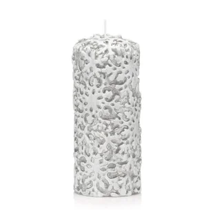 Świeca zainspirowana pięknem zimowej aury. kształt: walec kolor: srebrny wysokość: 16 cm średnica: 6,5 cm waga: ok. 350 g obsypana brokatem skład: hydrorafin...