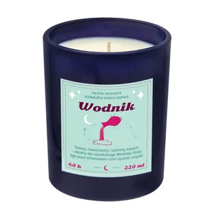 Świeca zodiakalna sojowa naturalna zapachowa WODNIK - bezpieczna, ręcznie robiona w szklanym słoiczku na prezent upominek dla osoby ze znakiem zodia..
