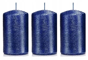 Świece ozdobne granatowe walec kokon 10/6 zestaw 3