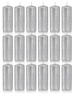 Świece ozdobne srebrne walec kokon 10/4 zestaw 18