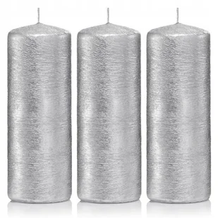 Świece ozdobne srebrne walec kokon 15/6 zestaw 3 szt ✅Zestaw 3 srebrnych lakierowanych świeczek obsypanych delikatnie srebrnym mieniącym się brokatem Prosty ...