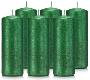 Świeczki ozdobne zestaw 6 świec walec 15/6 kolor zielony Zestaw 6 zielonych lakierowanych świeczek obsypanych delikatnie zielonym mieniącym się brokatem Pros...