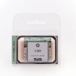 I Do Baza: naturalny wosk sojowy Zapach: czarnej porzeczki w głowie woni, frezji i róży w sercu oraz wanilii, ambroxanu, paczuli i drzewie sandałowym jako bazie Waga: 15g +-5% Wydajność: 21h Wymiary: dł. 5cm; szer. 3,3cm; wys.