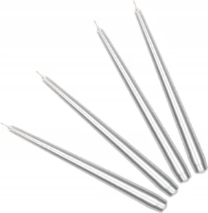 ZESTAW ŚWIECA STOŻEK SREBRNA METALIK STOŁOWA ŚWIECZKA KLASYCZNA ŚWIECE 4 SZTUKI Świeca pali się stałym i jasnym płomieniem. W dowolnym momencie możesz sprawi...