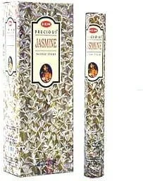Kadzidełka Jaśmin Hem Indie Opakowanie: 6 pudełeczek po 20 szt. razem 120 szt. Jeden z najładniejszych indyjskich zapachów. Olejki eteryczne, które wydobywają się z tego wspaniałego kadzidła wzmacniają zmysły.