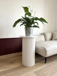 Biały okrągły, ryflowany stolik nocny, pomocniczy