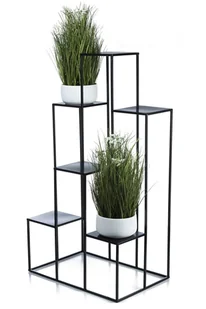 Nowoczesny kwietnik stojący w stylu loftowym. Dzięki swojej prostocie i unikalnemu designowi stojak będzie idealny jako uzupełnienie do każdego stylu mieszkania, pokoju czy domu. Dzięki solidnemu i wytrzymałemu wykonaniu sprawdzi się również na: balkon, ogród, altanę czy werandę. Stojak wykonany jest z drutu stalowego, malowanego proszkowo, a zatem jest odporny na czynniki zewnętrze oraz zniekształcenia. Kwietnik jest trwały, lekki i stabilny dzięki czemu ma uniwersalne zastosowanie w domu czy ogrodzie. Kwietnik ma cztery poziomy wysokości : 110/85/58/28 cm Prezentowany kwietnik jest w kolorze czarnym.
