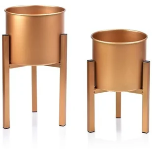 2. 500Waga brutto: 2. 750Jednostka miary: kpl Nowoczesny i elegancki zestaw 2 złotych obudów na stojaku z serii SWEN marki MONDEX. Doskonale podkreśli charakter każdego wnętrza. Wymiary L: Łącznie: Ø 24xH45cm Sama doniczka: