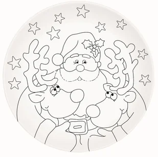 Porcelanowy talerzyk, z kolekcji ART & COLOUR ŚWIĘTA, w kolorze białym, ozdobiony czarnym konturem Świętego Mikołaja. Dostępny wraz z zestawem farb i pędzelkiem - do własnoręcznego pomalowania. Talerz znajduje się w pudełeczku, z podobnym motywem.