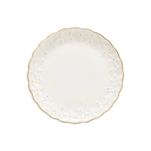 materiał: porcelana typu NBC kolor: biały malowany ręcznie złotem wypukły wzór wymiary: średnica 21 cm do mycia ręcznego
